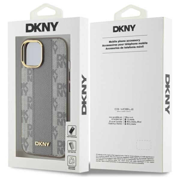 DKNY DKHMP15MPCPVSLE Apple iPhone 15 Plus 6.7″ dėklas telefonui pilkos spalvos Leather Checkered Mono Pattern MagSafe