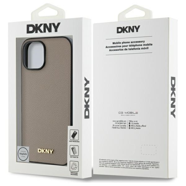 DKNY DKHMP15SPGHLME Apple iPhone 15 6.1″ dėklas telefonui gelsvas Grained Metal Logo MagSafe