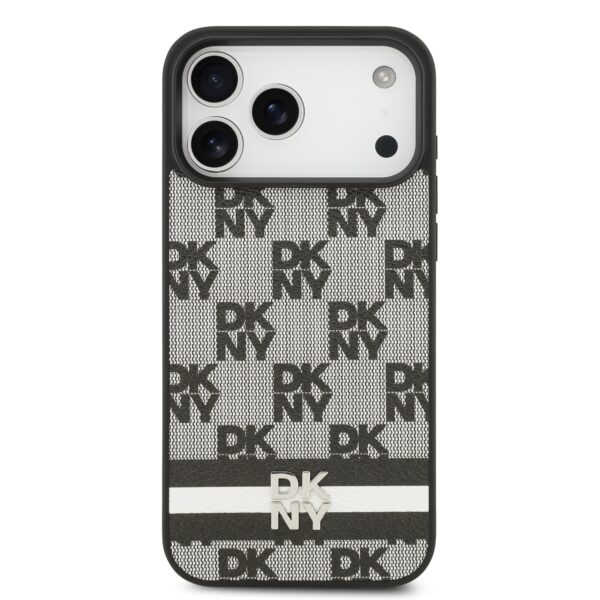 DKNY PU Leather Checkered Pattern and Stripe dėklas skirtas Apple iPhone 17 Pro Max juodos spalvos