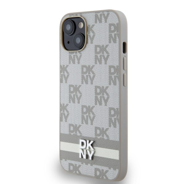 DKNY PU Leather Checkered Pattern and Stripe dėklas telefonui Apple iPhone 14 Beige