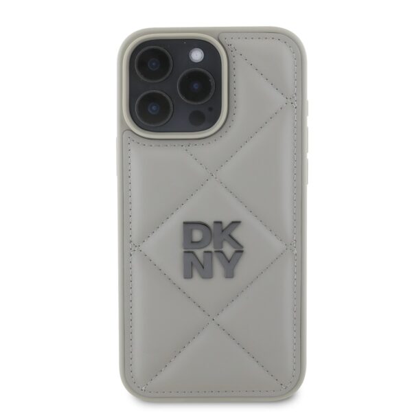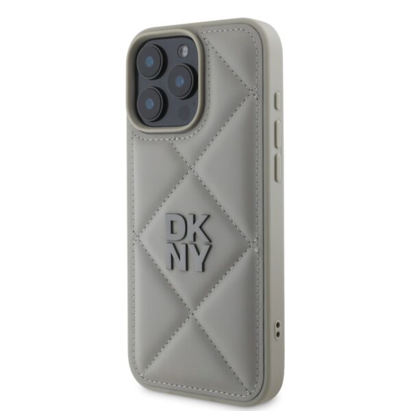 DKNY PU Leather Quilted Stack Logo Apple iPhone 16 Pro dėklas telefonui pilkos spalvos