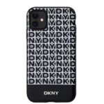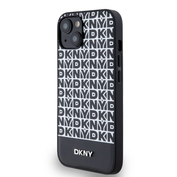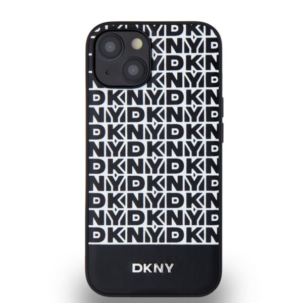 DKNY PU Leather Repeat Pattern Bottom Stripe MagSafe Case for Apple iPhone 13 juodos spalvos