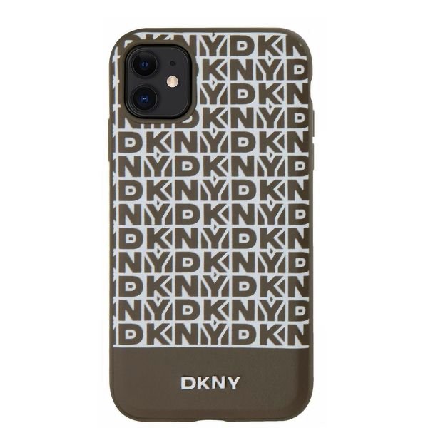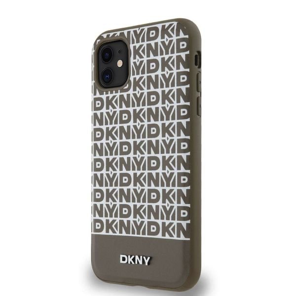 DKNY PU Leather Repeat Pattern Bottom Stripe MagSafe dėklas telefonui Apple iPhone 11 rudos spalvos