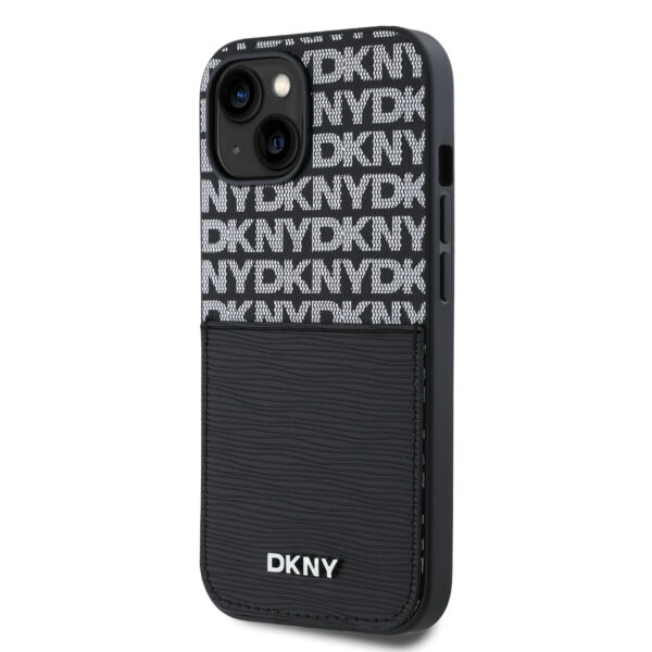 DKNY PU Leather Repeat Pattern Card Pocket dėklas telefonui Apple iPhone 15 juodos spalvos