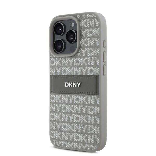 DKNY PU Leather Repeat Pattern Tonal Stripe Apple iPhone 16 Pro Max dėklas telefonui smėlio spalvos