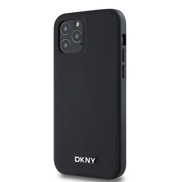 DKNY PU Leather Silver Metal Logo Magsafe dėklas telefonui Apple iPhone 12/12 Pro juodos spalvos