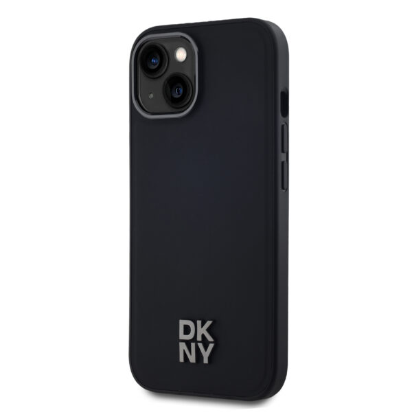 DKNY PU Leather Stack Logo Magsafe Case for Apple iPhone 15 juodos spalvos