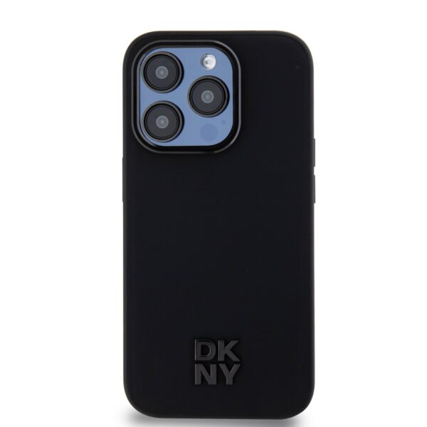 DKNY PU Leather Stack Logo Magsafe dėklas telefonui Apple iPhone 14 Pro Max juodos spalvos