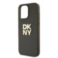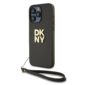 DKNY PU Leather Stack Logo Wrist Strap dėklas telefonui Apple iPhone 15 Pro rudos spalvos