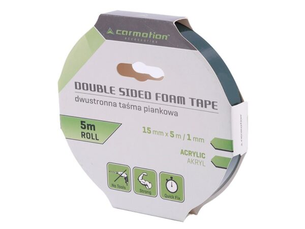 Double sided foam acrylic tape coated with high viscosity adhesive.
