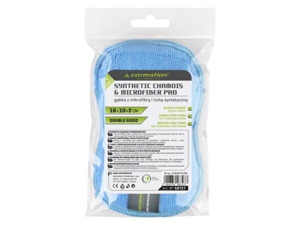 Dvipusė microfiber kempinė + synthetic chamois, 17x11x2 cm