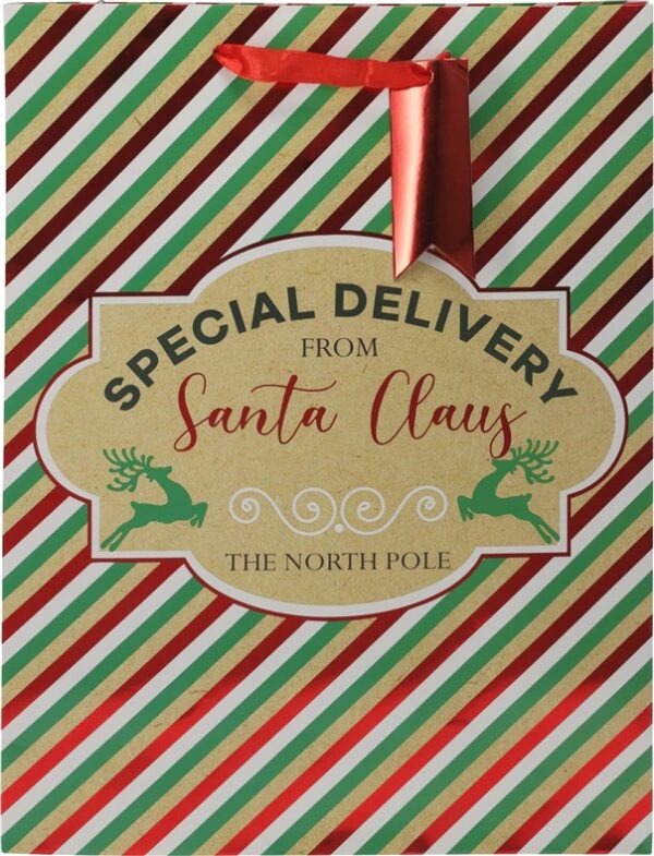 Modelis- Didelis. Ilgis- 26 cm. Plotis- 10 cm. Aukštis- 32 cm. Spalva- Kelių galimų spalvų/dizainų, parenkama atsitiktine tvarka. Medžiaga- Popierius. Dovanų pakavimo priemonė- Maišelis. Vienetai pakuotėje- 1.