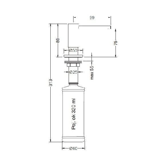 - Viršutinė dozatoriaus dalis nerūdijantis plienas