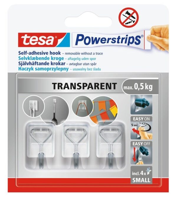 Drabužių kabliukas Tesa Powerstrips, 3 vnt., skaidri