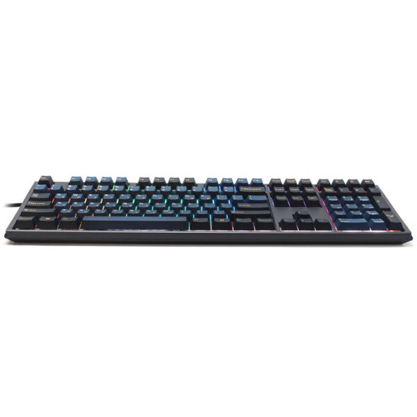 This version uses Cherry MX2A Blue Switches. These switches represent the latest generation of classic Cherry MX switches and are characterised by an improved bottom housing and an optimised factory lubrication process. They offer precise and tactile feedback with an audible click, making them ideal for heavy typists who prefer a noticeably distinct and thus more satisfying typing experience.