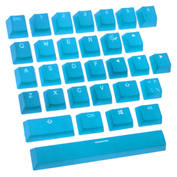 Blue keycaps from Ducky, 31 keycaps, rubberised surface with texture, manufactured using the double-shot process, with translucent lettering, compatible with Cherry MX keyboards.