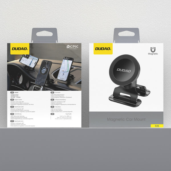 The Dudao F25 car holder is a practical solution for drivers who want to use their smartphone comfortably and safely while driving. The magnetic mounting system ensures a stable hold, even on uneven surfaces. Multi-directional 360° adjustment allows you to precisely position the screen to suit your needs. The holder operates quietly and stably, avoiding distractions while driving. It can be mounted on both the dashboard and the windshield.