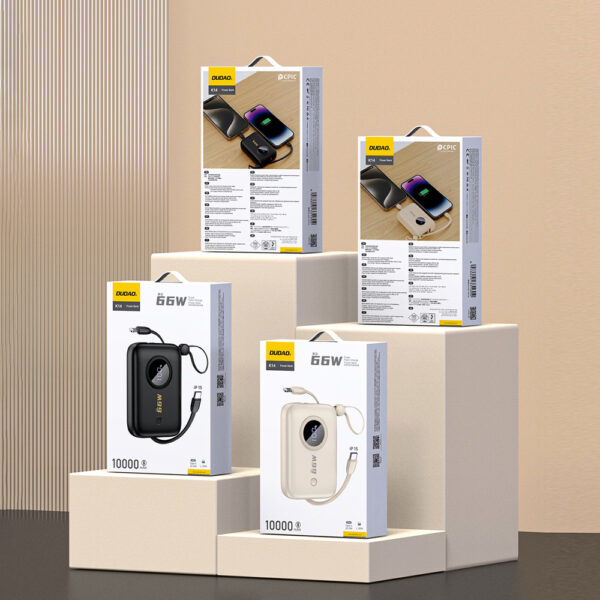 Dudao K14 powerbank with a capacity of 10,000 mAh and built-in USB-C / Lightning cables – beige