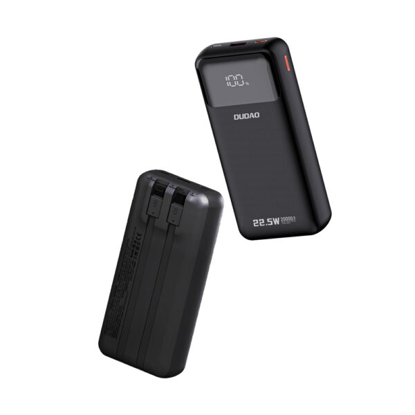 Dudao K15Pro powerbank with a capacity of 20000 mAh and power up to 22.5W, with USB-C / USB-A ports and built-in Lightning and USB-C cables – black