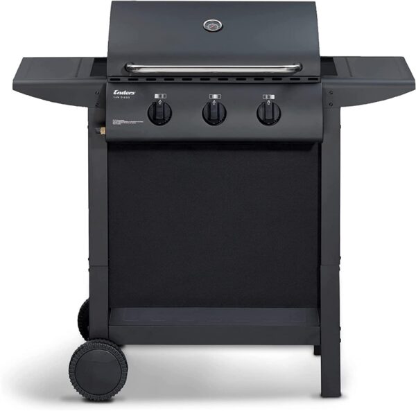 Prekės ženklas- Enders. Artikulas- 81166. Ilgis- 102 cm. Plotis- 52 cm. Aukštis- 97 cm. Spalva- Juoda sp.. Medžiaga- Nerūdijantysis plienas. Galia- 7050 W. Degiklių skaičius- 3. Degiklio galia- 2350 W. Degiklių reguliavimas- Reguliuojamos padėtys. Šoninis degiklis/viryklė- Ne. Dujų degiklių elektrinis uždegimas- Taip. Kepimo paviršiaus plotas- 0.16 m². Kepimo paviršiaus medžiaga- Nerūdijantysis plienas. Kepimo paviršiaus aukštis nuo žemės- 81 cm. Dujų rūšis- Propanas ir butanas. Dangčio tipas- Atverčiamas. Ratukų skaičius- 2. Su termometru- Taip. Su staliuku- Taip. Tinka kelionėms- Ne. Privaloma garantija- 24 mėn. Garantija juridiniams asmenims- 12 mėn. Papildoma informacija- Svoris: 15,5 kg. Žarnos ir dujų slėgio reguliatorius: 30 mbar..
