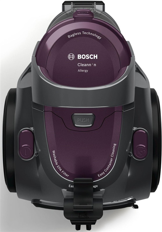 Prekės tipas- Dulkių siurbliai. Prekės ženklas- Bosch. Modelis- GS05 Cleann’n BGC05AAA1. Dulkių siurblio tipas- Sauso valymo cikloninis. Svoris- 4.4 kg. Spalva- Pilka, Violetinė. Komplekte- Antgalis plyšiams, antgalis baldams. Dulkių rinktuvo talpa- 1.5 l. Galia- 700 W. Metinės energijos sąnaudos- 28 kWh. Vamzdžio tipas- Teleskopinis. Triukšmo lygis- 78 dB. Galios reguliavimas- Ne. Skysčių siurbimas- Ne. Filtras- PureAir. Galios reguliavimas- Ant dulkių siurblio. Antgalio perjungimas (grindys / kilimas) – Taip. Antgalis plyšiams – Taip. Antgalis baldams- Taip. Privaloma garantija- 24 mėn. Antgalis kilimui- Ne. Antgalis dulkėms – Ne. Papildoma informacija- Energijos sąnaudos per metus: 28 kWh. Triukšmo lygis: 78 dB. Veikimo atstumas: 9 m..