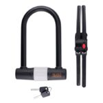 The bicycle lock will protect against theft and, thanks to the heat shrink cover, will protect the frame from scratches. It features an automatic cylinder and a flat key.