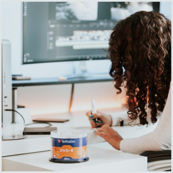 The surface of Verbatim DVD-R discs is coated with a special Hard Coat layer that protects against scratches, fingerprints, and dust. This significantly reduces errors during data recording and reading, which translates into greater reliability in everyday use. This solution is especially important for users who frequently handle physical data media. The protective layer ensures that each disc maintains full functionality even with intensive use and frequent transferring between devices.