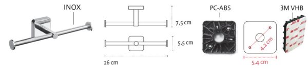 Dvigubas tualetinio popieriaus laikiklis Kapitan QUATTRO 44 22, chromas