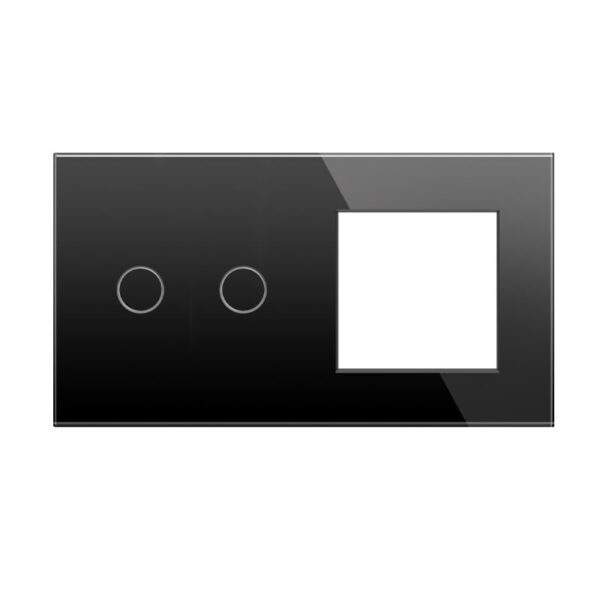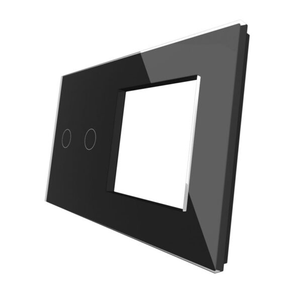 - Juodas dvipolis sensorinis dangtelis su vienviečiu rėmeliu (matmenys 157 × 86 mm);