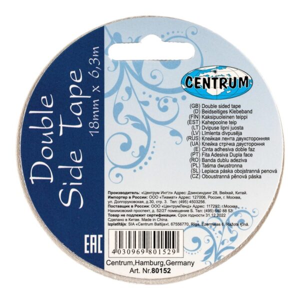 Dvipusė lipnioji juostelė CENTRUM 80152, 6,3 m × 18 mm