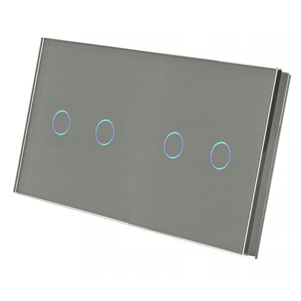 Pilkos spalvos stiklinis sensorinis dvivietis dvipolis jungiklio dangtelis Feelspot FSSD222G (be lizdo). Pilkos spalvos stiklinis sensorinis dvivietis dvipolis jungiklio dangtelis pagamintas iš grūdinto stiklo, yra atsparus vandeniui ir ugniai. Aukštos kokybės prietaisas leis mėgautis patogiu valdymu bei paprasta priežiūra. Su modernaus dizaino jungikliu vienu prisilietimu galėsite valdyti keturių zonų apšvietimą patalpoje tada, kada labiausiai to reikia. Dvivietis dvipolis sensorinis jungiklis Feelspot turi įmontuotą LED indikatorių, kuris rodo kada šviesa yra įjungta/išjungta, o tai padės lengvai rasti jungiklį tamsoje. Paprasto valdymo ir patikimo veikimo dvivietis dvipolis sensorinis jungiklis Feelspot įgyvendins įvairiausius techninius ir interjero dizaino sprendimus, atitinkančius išrankiausio kliento poreikius.