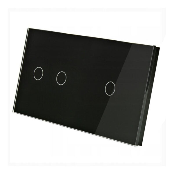 Grūdinto stiklo sensorinis dvivietis dvipolis / vienpolis jungiklio dangtelis Feelspot FSSD221B gali būti komplektuojamas su bet kuriuo jungikliu, rozete ir kitais lizdais.