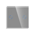 Grūdinto stiklo sensorinis dvivietis vienpolis jungiklio dangtelis Feelspot FSSD211B gali būti komplektuojamas su bet kuriuo jungikliu, rozete ir kitais lizdais.