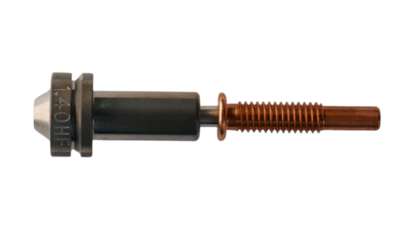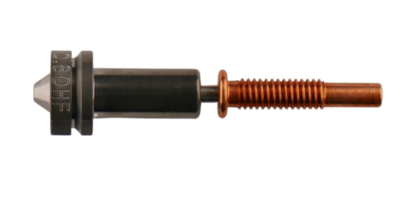 HF HT-A nozzles are high-temperature, high flow, abrasion-resistant nozzles. Much like ObXidian, these nozzles have a hardened steel tip, copper carrier and copper spreader segment to optimise the transmission of heat to the heatsink. The nozzle is then coated with Chromium Nitride to provide abrasive resistance, additional corrosion prevention and non-stick properties for printing up to 500°C