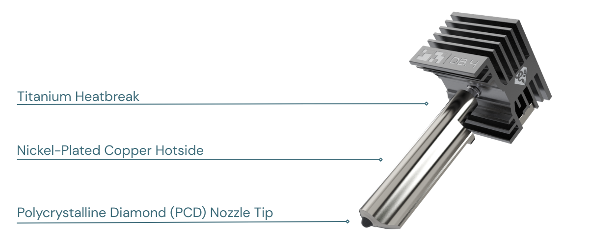 At the core of the DiamondBack series is the solid PCD insert. Unlike coated nozzles, the tip consists of thousands of diamond crystals sintered together. This creates a surface hardness that far exceeds hardened steel or tungsten carbide. The material’s thermal properties ensure efficient energy transfer to the filament, often allowing for printing at lower temperatures while maintaining high volumetric flow.