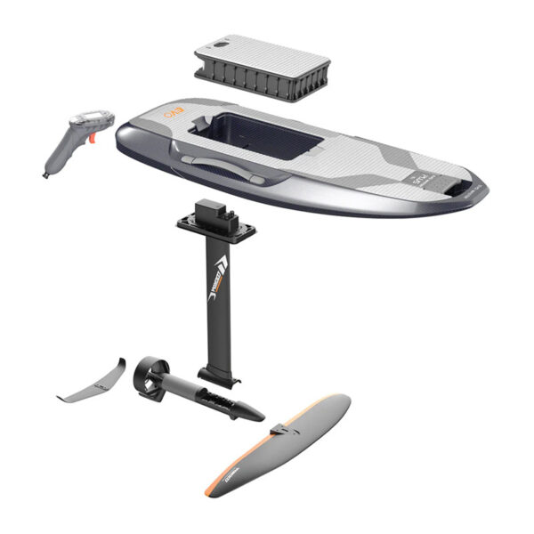 The one-piece carbon fiber mast ensures high stiffness and stability, which translates to more predictable board behavior at high speeds. This is complemented by a lightweight, precision-machined (CNC) hull, which allowed for reduced weight without sacrificing strength. The result is a design focused on performance and precise handling, particularly important for users who consciously push the limits of the eFoil.