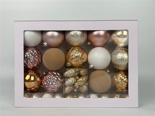 Prekės ženklas- Christmas Touch. Spalva- Aukso, Rožinė. Medžiaga- Plastikas. Žaisliuko tipas- Nedūžtantis. Vienetai pakuotėje- 50. Privaloma garantija- 24 mėn.