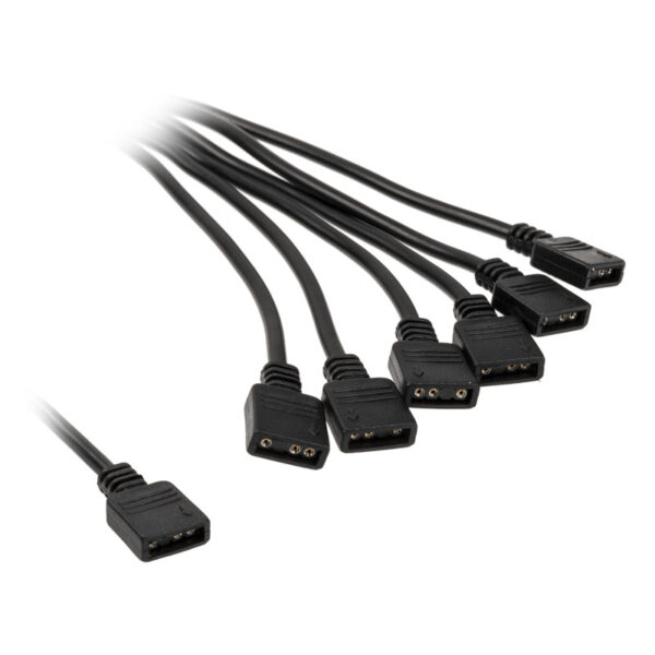 The EK-D-RGB 6-Way Splitter Cable allows users to connect up to six digitally addressable RGB products to a single D-RGB (addressable) motherboard or controller header so that they can synchronize all their D-RGB products.