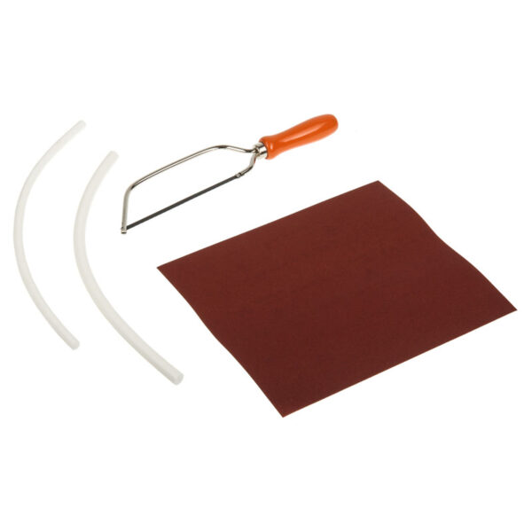 Set for cutting acrylic tubes with 10 – 12 mm inner diameter, including saw, sandpaper & silicone cords