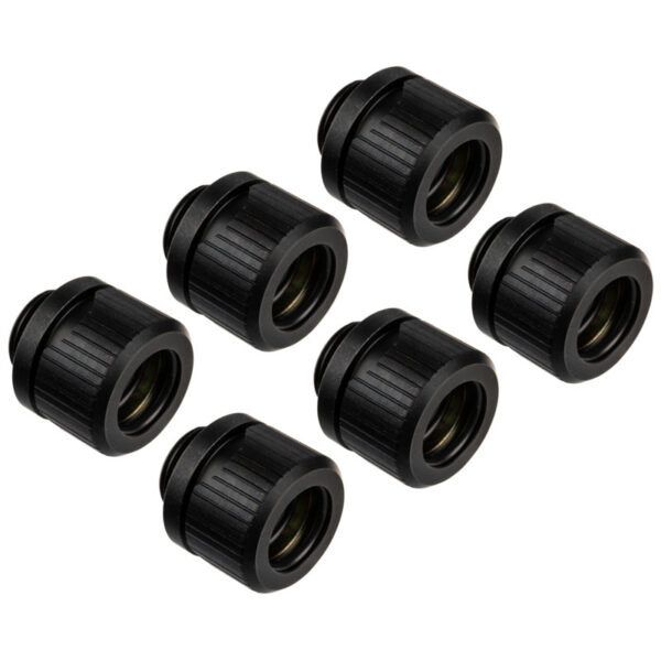 Black coated Compression Fitting from EK Water Blocks, for tubes with 12 mm OD, Compatible with tubes made of acrylic / PETG / copper / brass / stainless steel, 6-pack
