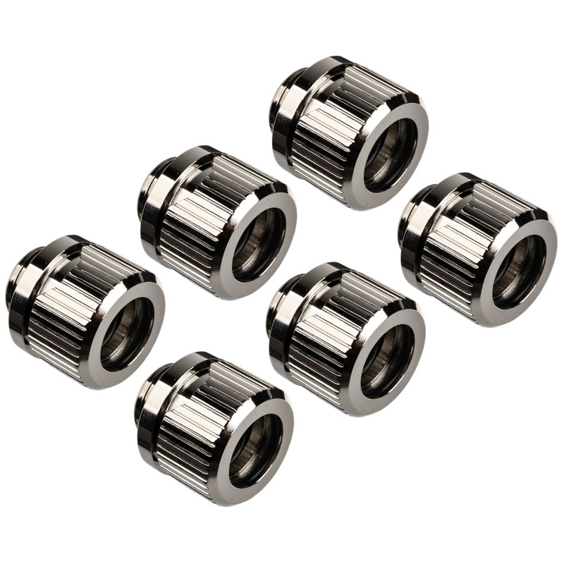 Nickel-plated compression fitting from EK Water Blocks, for tubes with 12 mm OD, compatible with tubes made of acrylic / PETG / copper / brass / stainless steel, pack of 6