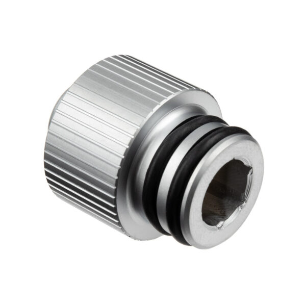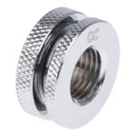 This adapter greatly helps with attaching a radiator to the Reflection² distribution plate, reducing the strain needed to screw in fittings and adding convenience and ease of use. The fitting is made of CNC-machined brass with a satin silver finish.