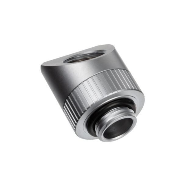 EK-Quantum Torque Rotary (Adapter Fitting) is a revolvable angled (45°) adapter fitting with G1/4″ threads. In the form of a cut-off cylinder, it is very sturdy and there are zero movements in the revolvable joint. This Quantum Line adapter is made out of CNC machined brass with high-quality satin silver finish while the seal is made by quality rubber O-rings. Satin Titanium Quantum Torque series fittings are intentionally not painted on the inside to reduce the level of possible pollutants in the loop. It is an extremely secure and sturdy piece that will last for many future builds. The adapter allows for connection of fitting with G1/4″ threads to extend tubing possibilities in your water cooled system allowing for easier bends and better accessibility.
