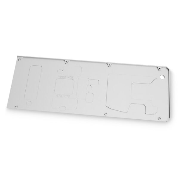 EK-Quantum Vector XC3 RTX 3070 Backplate – Nickel is a CNC machined retention backplate made from nickel-plated aluminum, that fits all EK-Quantum Vector XC3 RTX 3070 water blocks.