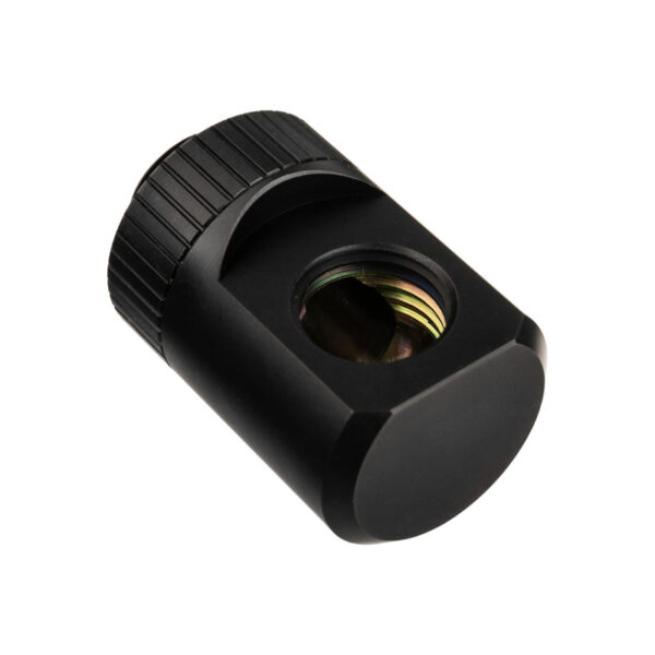 EK-Quantum Torque (Adapter Fitting) – Black is a revolvable angled (90°) adapter fitting with G1/4″ threads. In the form of a cylinder, it is very sturdy and there are zero movements in the revolvable joint. This Quantum Line adapter is made out of CNC machined brass with high-quality Satin Black finish while the seal is made by quality rubber O-rings. Black EK-Quantum Torque series fittings are intentionally not painted on the inside to reduce the level of possible pollutants in the loop. It is an extremely secure and sturdy piece that will last for many future builds.