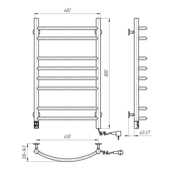 - Elektrinis šildomas rankšluosčių džiovintuvas Camellia 480×800 jutiklis su laikmačiu, Ukrainos gamintojo NAVIN, pagamintas iš AISI 304 maistinio nerūdijančio plieno, kuris yra atsparus įbrėžimams ir mechaniniams pažeidimams, taip pat pasižymi dideliu atsparumu korozijai.