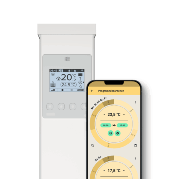 Itin stilingi elektriniai, pusiau akumuliaciniai radiatoriai „AeroFlow®“ yra itin ekonomiški, pasižymi šilumos kaupimu ir optimizuotu šilumos srautu. Šie privalumai užtikriną jaukų, šiltą, malonų mikroklimatą bei padeda sumažinti energijos sąnaudas. Naujoviška FlexiSmart Pro valdymo sistema siūlo dar išmanesnį ir efektyvesnį būdą šildyti namus. Tiesiog prisijunkite prie WLAN ryšio ir pradėkite veikti! Naująjį „Aeroflow” elektrinį radiatorių galima tiesiogiai prijungti prie WLAN tinklo, o tai leidžia patogiai valdyti šildymą iš bet kurios vietos per išmanųjį telefoną ar planšetinį kompiuterį. FlexiSmart Pro valdiklis leidžia tiksliai reguliuoti temperatūrą ir tvarkaraščius. Naudodami „FlexiSmartPro” valdiklį visiškai kontroliuojate savo šildymo sistemą ir galite ją pritaikyti pagal savo individualius poreikius.