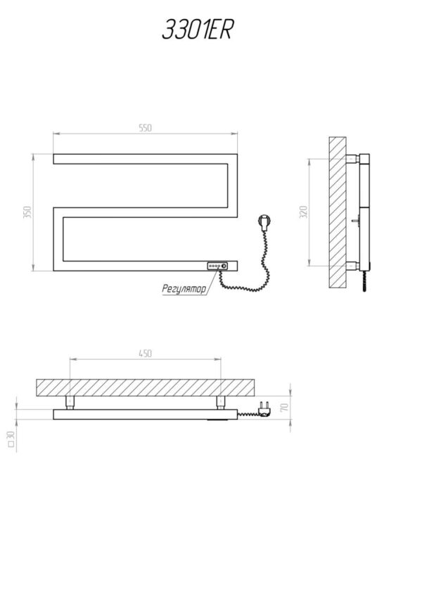 Elektrinis rankšluosčių džiovintuvas Kosser Zeta 350×550 ER, su laikmačiu, juodas (laidas dešinėje)