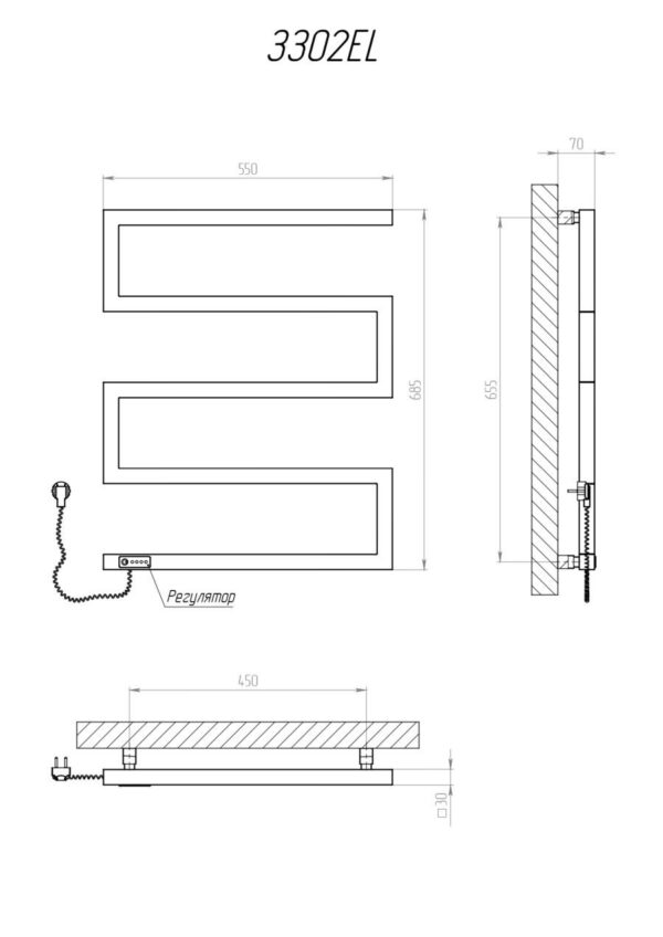 Elektrinis rankšluosčių džiovintuvas Kosser Zeta 685×550 EL, su laikmačiu, juodas (laidas kairėje)