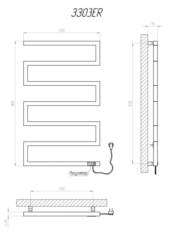 Elektrinis rankšluosčių džiovintuvas Kosser Zeta 900×550 ER, su laikmačiu, juodas (laidas dešinėje)